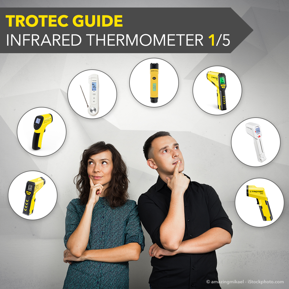 Similar to penetration thermometers, infrared thermometers are digital measuring devices. But because infrared thermometers allow contact-free and hence hygienic and safe measurement at the same time, they are enjoying ever greater popularity. As a result, many users are asking what and how they can actually use their pyrometer for measurement. You can find the answers here – and in four more editions of our new Trotec Beginner’s Guide covering all aspects of the infrared thermometer.