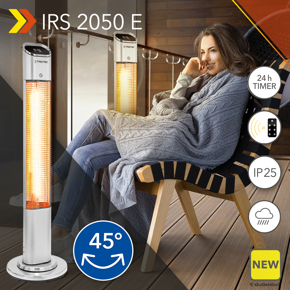 This one is sure to please the majority: Because it corresponds to the desire for freedom. Because it takes the need for warmth between people seriously. Because it distributes all benefits fairly. The infra-red radiant heater IRS 2050 E. It is designed with a heating output of 2,000 watts so that you can enjoy your patio whenever you want. It wraps you, your loved ones and your guests in cosy warmth on 9 heating levels. And thanks to 45 ° oscillation, it is distributed equally to everyone on your patio. Well, it will receive our votes. And yours?