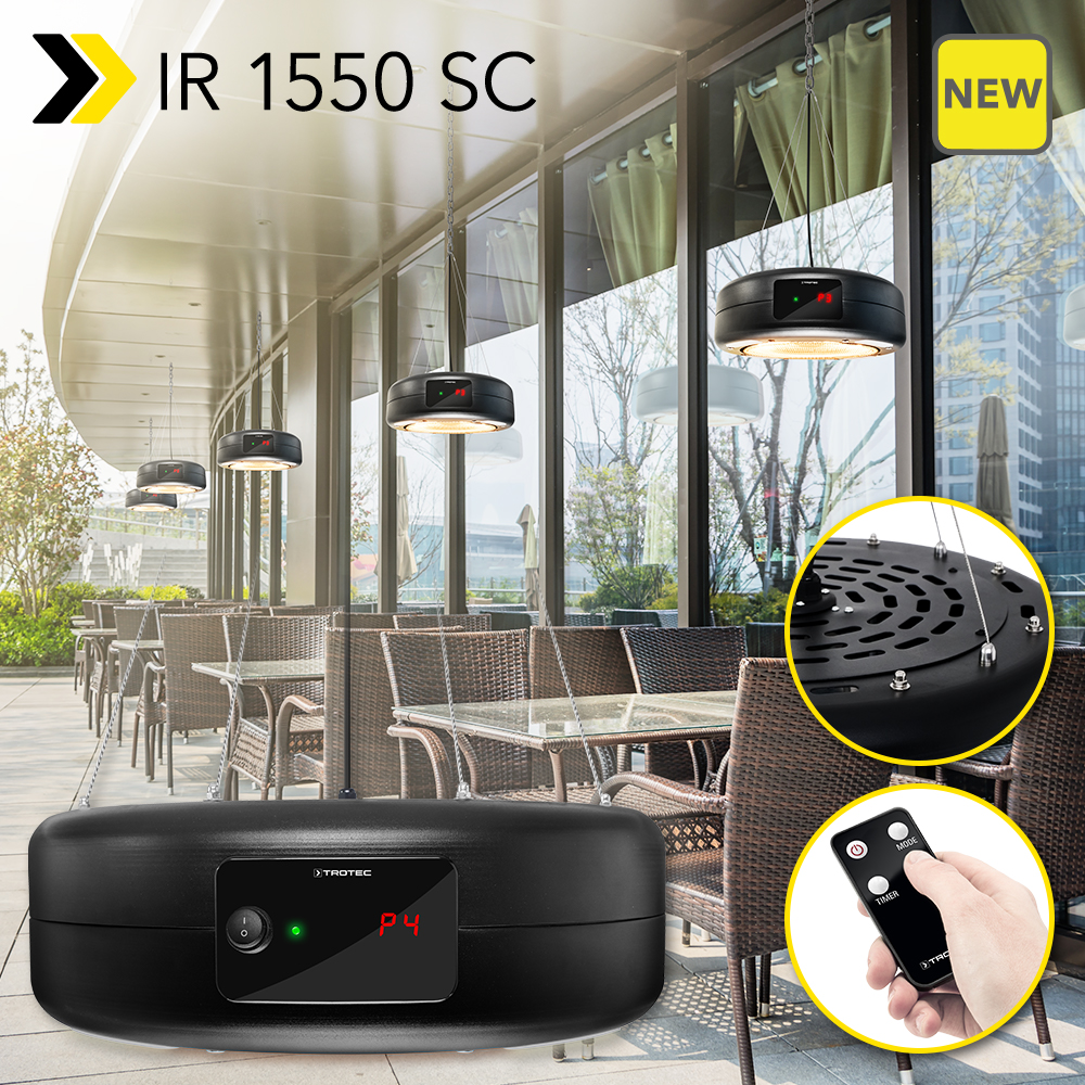 We’re finally open again: So get back out to the bar, to the restaurant, to balconies and patios! With one, two, or more friends, from a hundred households! Anyone looking to savour every minute of their new-found freedom can’t be dependent on capricious weather. A cooler afternoon than expected? The evening is colder than predicted? These are exactly the cases that Trotec’s practical infrared heating solutions are designed for – none more than our most powerful, and finally available, IRS 3020 design standing radiant heater! Up to 3,000 watts provide satisfying warmth all around. Nobody will go inside, let alone back home. Unless someone shouts “closing time!”. But what fun is that?