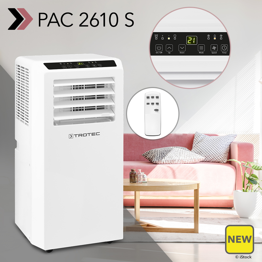 My oh my – this summer will be mercilessly hot: meteorologists are warning of temperatures consistently above the 40 degree mark and of the warmest summer in over a hundred years! You shouldn’t let it run riot in your home or office – and thanks to the PAC 2610 S air conditioner, which is finally available, it doesn’t have to. With cooling, ventilation and dehumidification, the 3-in-1 multi-talent makes even the hottest summer bearable, at least within your own four walls. And it even has more fine comfort functions to offer…