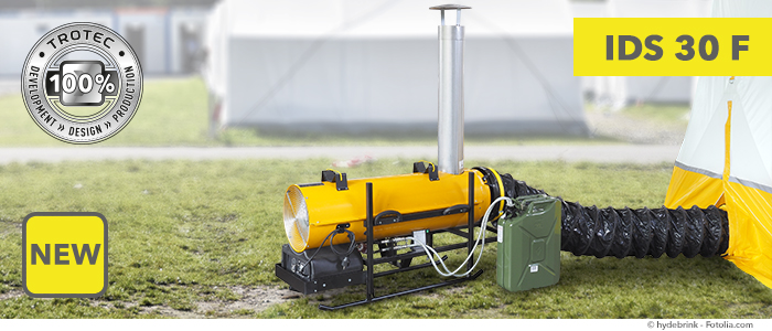 *the abbr. of “and so much more” is the appropriate shorthand description to convey the various ways in which our new IDE 100 D oil heater fan can be used. Whether you want to keep construction site areas reliably warm, large hall areas effectively heated, livestock safely protected from the cold or work materials free of ice despite the freezing cold – the 100 kW direct heating power of this professional heater offers you a high heating capacity with 100 % efficiency for every requirement.