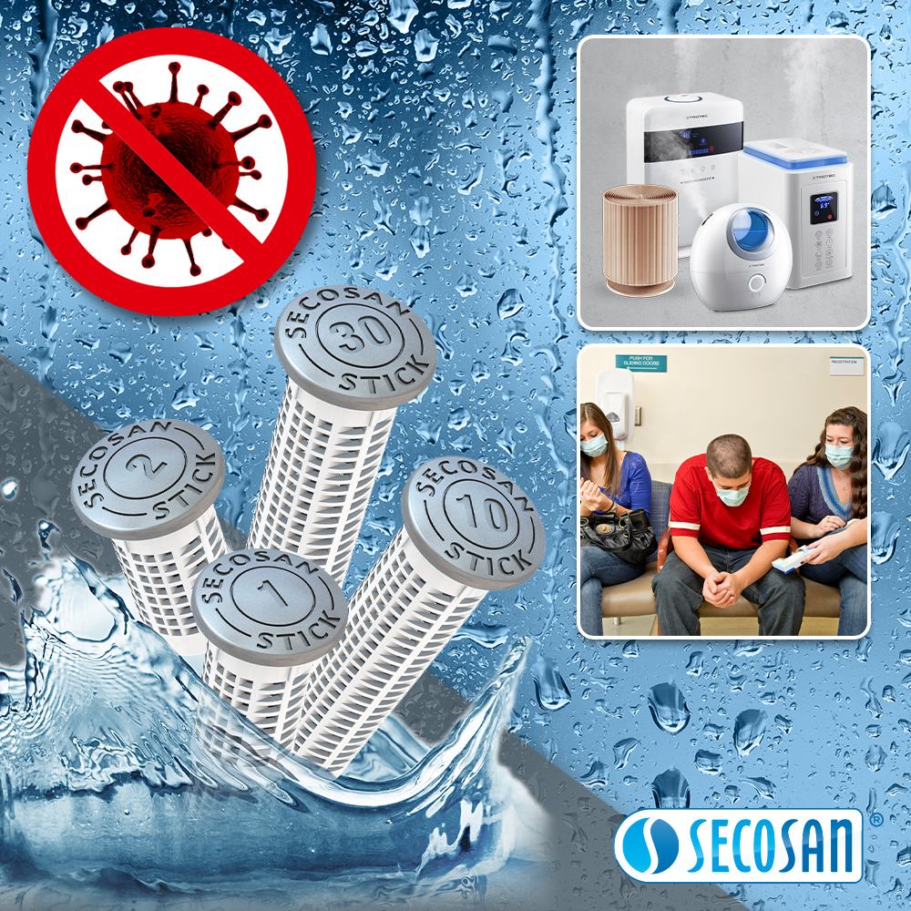 The corona virus also lurks treacherously where people are waiting for help – in the waiting rooms of doctors’ surgeries and hospitals. But also in the still open offices of the authorities and in open-plan offices. Here as there, there are a reasonably large number of humidifiers that significantly reduce the risk of inhaling viruses that have been coughed up. In order to prevent the water tanks of these devices from being contaminated, a SecoSan® stick should be added to each of them. This keeps the water fresh as on the first day – and above all germ-free!