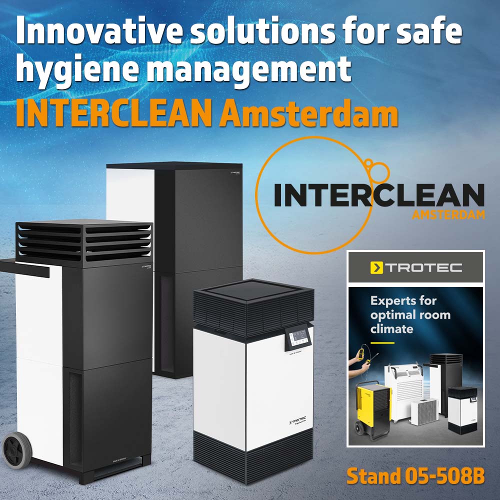Visit us at INTERCLEAN in Amsterdam and get to know the outstanding Trotec range of solutions for effective and safe hygiene management. The trade fair will take place from 10 to 13 May 2022 at the Amsterdam Congress Centre. Our team looks forward to seeing you at stand 05-508B.