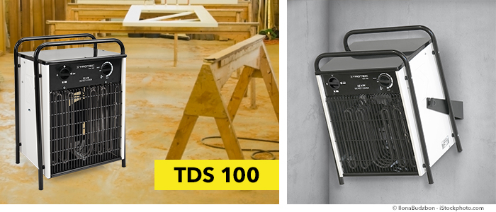Our warmest recommendation for big heating jobs – the TDS 100 electric fan heater is finally available again. The impressive professional solution is 100% Trotec in development, design and production and unites solid engineering in a budget-optimised solution focussing on principally longer stationary heating applications. The powerful electric heater is especially suitable for professional heating of workshops, large warehouses and production halls due to its convenient spare capacity.