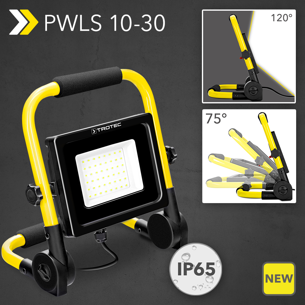 Work can only be carried out sensibly and without errors in optimally illuminated work areas. That is why the new construction spotlight PWLS 10-30 with 48 high-performance LEDs, which is finally available, provides extra-bright light with 2,700 lm – at a beam angle of 120°. And this enables comfortable work at any time of day, even in the darkest hours of the morning and evening. To do so, you can turn and rotate the 30-watt construction spotlight as you wish, because the lighting direction of the LED spotlight can be adjusted by up to 360°. Only a few devices in this price range are this flexible. Not to mention, so unbeatably cheap!