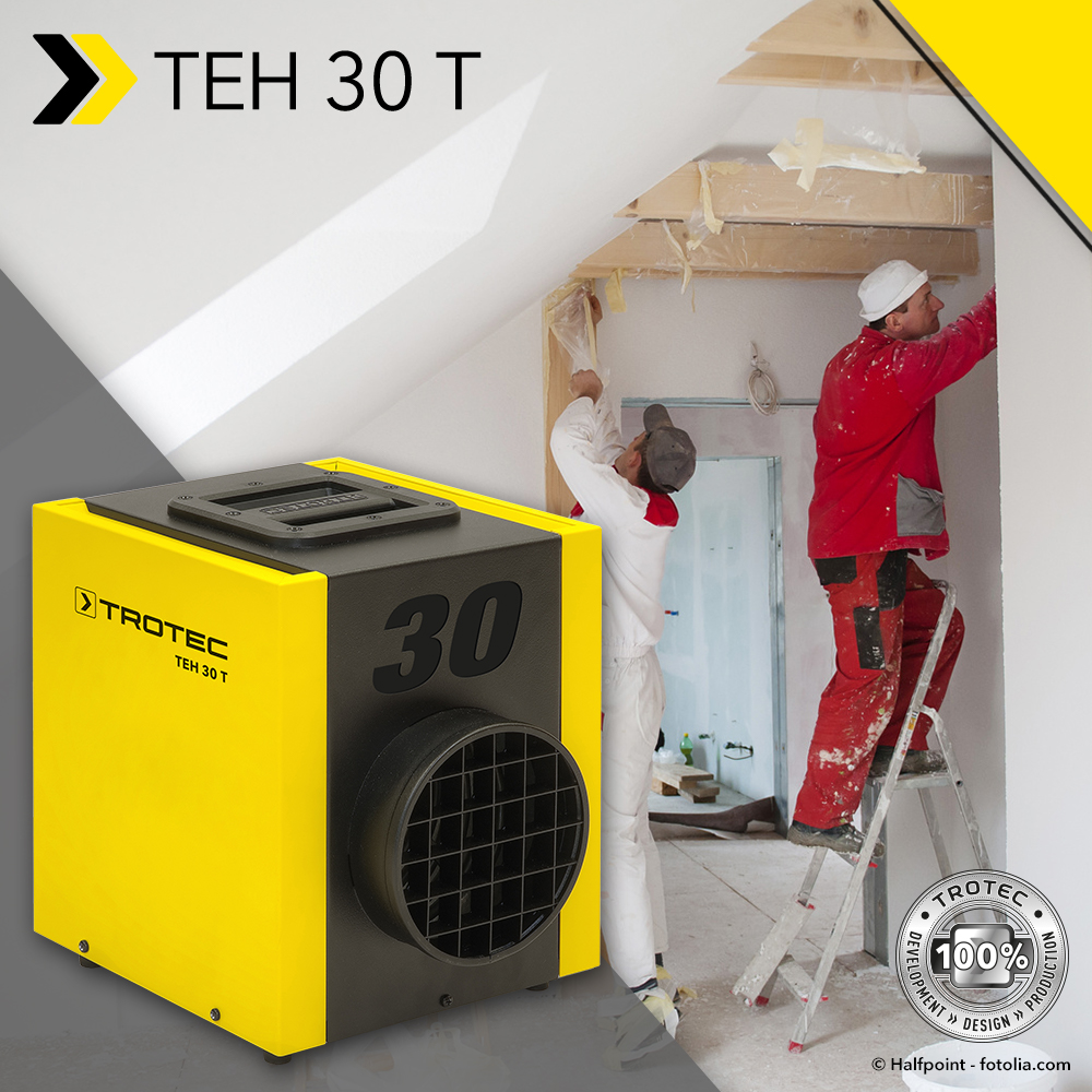 The stackable TEH electric heater 30 T is a professional device that is specially made to meet the most demanding material and performance requirements. With its condensate-free, clean air, it is optimally suited to heating unventilated rooms such as small construction site areas, storage or production rooms, as well as in many other application areas. Thanks to its practical, industrial German design, this highly mobile heater guarantees continuous operation with no interruptions and a long service life.