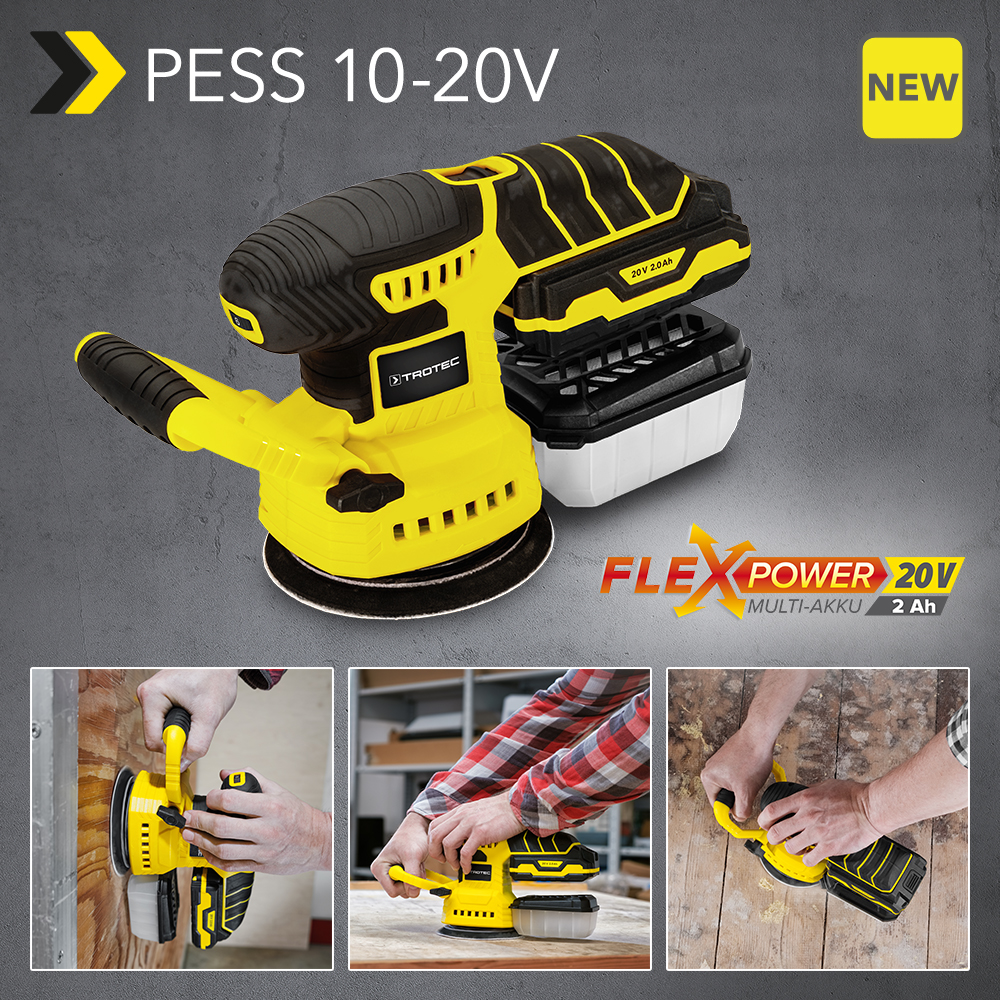 NEW Cordless eccentric sander PESS 10-20V: For the perfect cordless fine sanding of large areas – including sandpaper set for woodwork