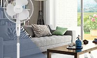 The TVE 16 is great at all 3 speed levels with its ultra-quiet operating noise level. Thanks to its optimally calibrated fan blades, which, in combination with its stable, star-shaped base, ensure optimal running smoothness, the pedestal fan can also be used at night to cool noise-sensitive bedrooms. The TVE 16‘s energy consumption is delightfully low and in comparison to, for example, mobile air conditioning units or air coolers, unbeatably good value. Its continuous height adjustment which ranges from 110 to 129 cm makes the pedestal fan as much of a flexible partner at home and at the office as the switchable automatic 90° oscillation and the 30° vertically adjustable angle of the fan head do.