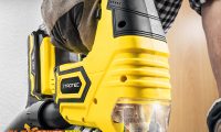 - the tool’s powerful motor is powered by an energetic 20 V rechargeable battery. Thanks to the lithium-ion technology, the battery doesn’t exhibit memory effect or self-drain, meaning that the jigsaw is also ready to use at any time, even if it has not been used for a long time. A three stage illuminated indicator on the device informs you about the current battery status and you can fully charge an empty battery in just under an hour with the included quick charge device.