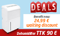 Say yes now, to our DEAL and you safe 22.61 € waiting discount. You better order today! The Dehumidifier TTK 90 E – now for only 249.96 € at our Trotec Shop.