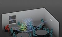 Outdoors, aerosols expelled when speaking are distributed and diluted by natural air circulation. The risk of inhaling viruses expelled by other people while speaking is therefore rather low. In closed rooms – without air circulation – however, the aerosol concentration in the room air increases with each additional person. Aerosol clouds float undiluted in the room and the danger of inhaling infectious viruses via the air is relatively high.