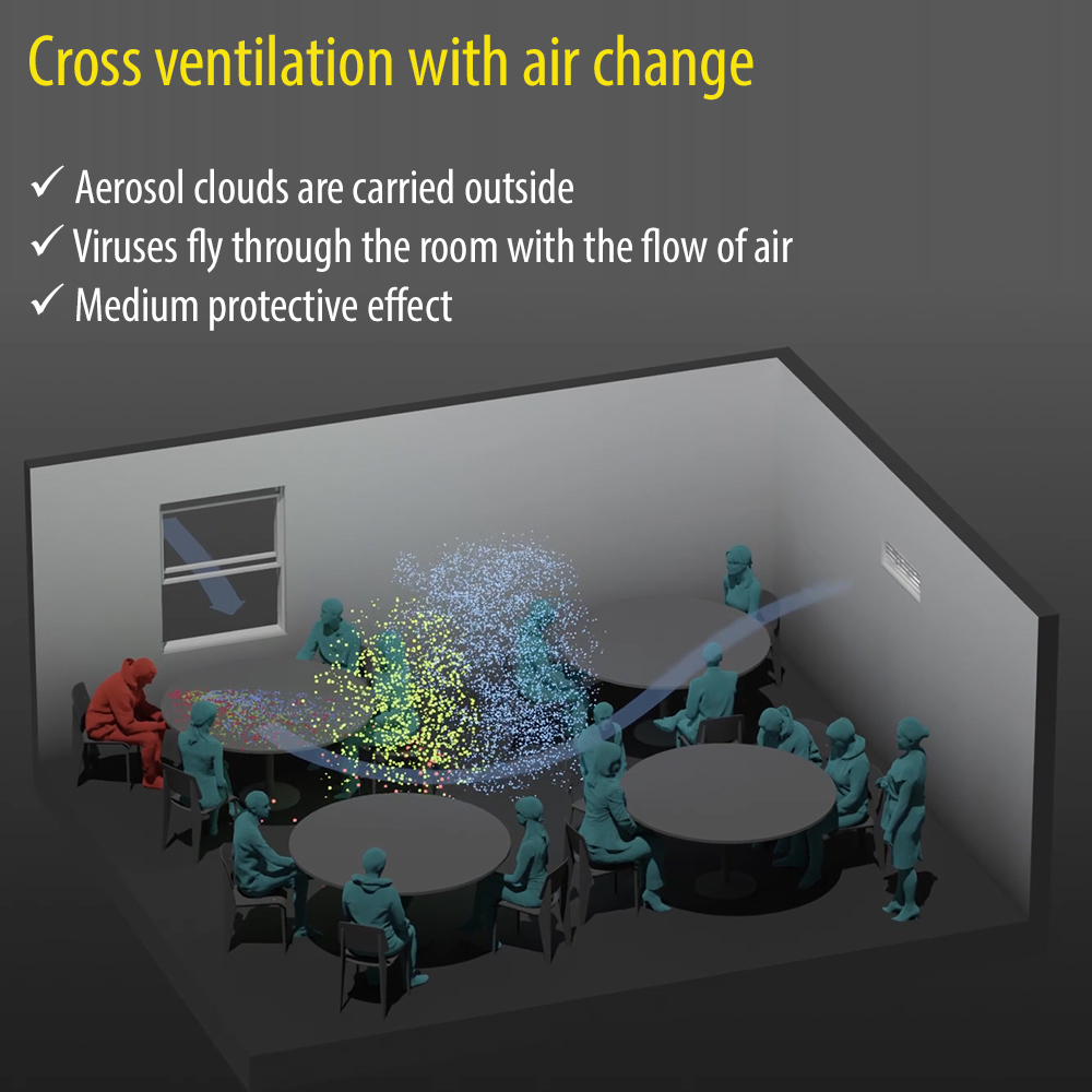 • A fan in a closed room therefore does not protect against the coronavirus. Aerosol clouds are not diluted or filtered out.
