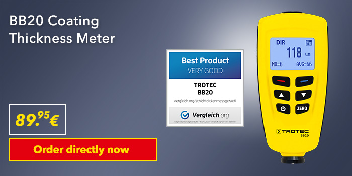 Well-repaired accident and paint damage is difficult for laymen to recognise. But fortunately there are practical helpers such as the car paint testers BB20 and BB30 from Trotec, which make it comparatively easy to detect previous and old damage.
