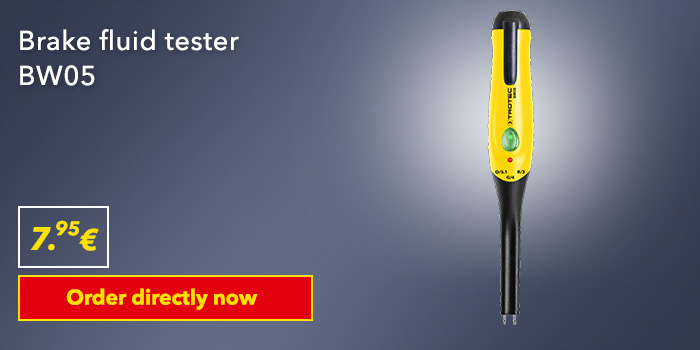 If you maintain and care for your car yourself, you should always check the brake fluid in spring. This is important for the road safety of the vehicle, but also increases the service life of the brakes. Checking the brake fluid quality is easy and can be done without a trip to the workshop using the  BW05 brake fluid tester in a pen-shaped design.