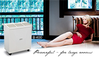 The clearly designed operating panel of the B 400 has a hygrostat and fan control as well as level indicators to let you always know the water level. When the 34 litre tank is empty the device switches off automatically before a status lamp indicates that the tank should be refilled. Additionally, the B 400 has an adjustable vent grid, it is made of robust, powder-coated steel sheet and the built in brace guarantees an optimal air circulation.