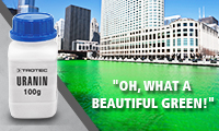 Even the smallest quantities of Uranin, when diluted in water, have an enormous colouring capacity. Less than 1 g Uranin is enough to turn 1000 l of water fluorescent green. Around 500 g of Uranin could intensely colour sea areas of approximately 4000 m2 . And as a fluorescent dye, Uranin is highly suitable for rendering leakage points visible in leaking waste water pipes, on flat roofs and in humid cellars, or for testing of leaks in walls, pipes or tank systems.
