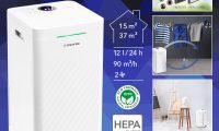 • the combined dehumidifier with HEPA air purifier (95% effective HEPA filtration of bacteria, viruses, pollen, fine dust, dust mites, mould spores and other allergens and pollutants)