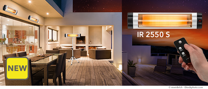 Summer is now in extra time: with the new high-performance infrared radiant heaters from the IR S series, you can play a trick on the increasingly cool temperatures on your patio. Both radiant heaters are the ideal solution for providing chilly corners in cellars, workshops or restaurant terraces for example, with cosy warmth.