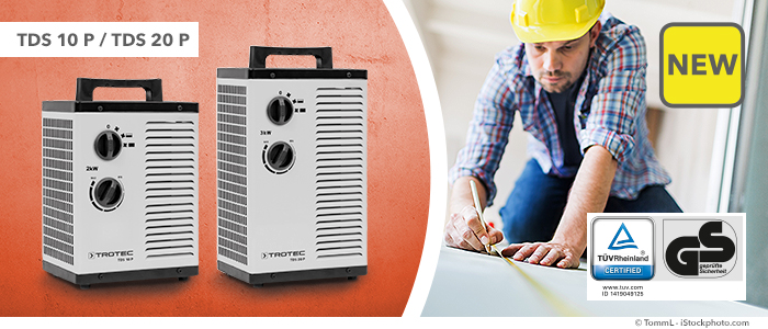 Fan heaters of this class usually employ axial fans, but the TDS P series heaters are uniquely equipped with high-performance radial fans. Compared to axial designs, these allow better air performance with higher pressure and less noise. To allow the heat output to be individually adjusted, both TDS models possess a continuously adjustable thermostat and two separate heating levels, with heating capacities of up to 2kW for the TDS 10 P and up to 3kW for the TDS 20 P.