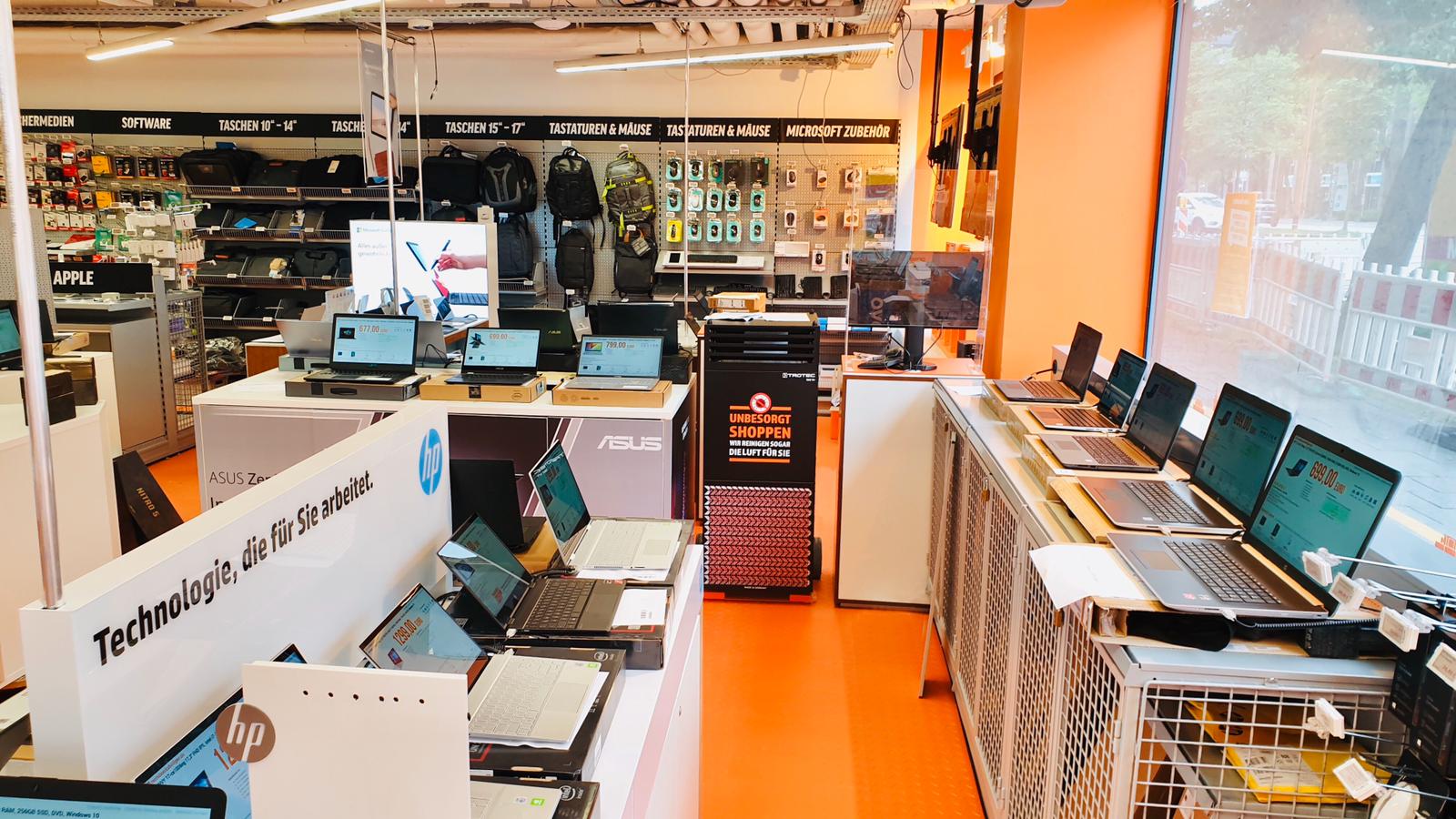 Distancing rules, a reduction in the number of customers in the store and increased cleaning and disinfection procedures are, when considered in isolation, all sensible measures! But notebooksbilliger.de, as a pioneer in terms of hygiene, wanted to offer their customers and employees much more than just the legally required standard. They want to ensure that the people in the room are protected from all possible transmission paths. And also to prevent the inhalation of infectious aerosols, which are expelled, invisible, into the air when we cough, rising up to several metres into the air like smoke and only sinking to the ground over a large area slowly after several hours, even behind supposedly safe sneeze guards.