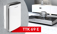 The TTK 69 E proves convincing with its complete range of features that leaves hardly any wish unfulfilled: If you want, the hygrostat-controlled automatic dehumidification mode will take on the entire process of keeping the room dry. To do this, you simply set the desired humidity level as a target value on the high-quality LCD display. Similarly, you can use the variable operation in continuous mode and also with timer control.
