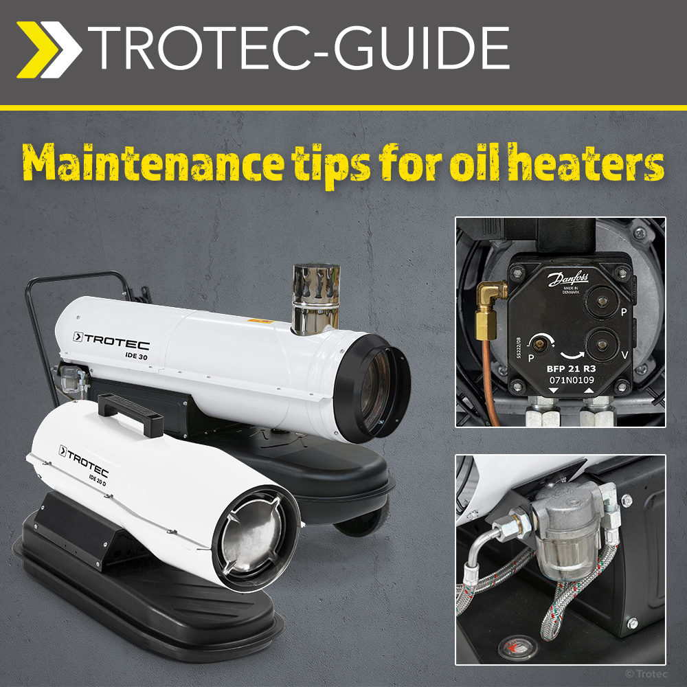 Increasingly colder temperatures also affect hard-boiled workers in building shells, warehouses or cattle sheds. Now is the time to start the mobile oil heaters up again. But if it was simply put away after its last use, you should clean the oil heater and ensure it works properly before turning it on again – before it starts to ‘spit’, in other words the flame burns irregularly, or worse. The Trotec guide tells you what you should pay attention to in general – not only in terms of the oil heater fans in our IDE series …