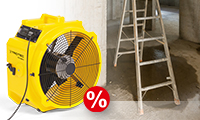 Stagnation is regression: This motto is true of many areas – even for air. If the air is stagnant on a construction site, the building structure dries slowly. And this means time is wasted, resulting in financial losses for the construction project. In stagnant air, dust accumulates, and who wants to work under such conditions? Set your room air in motion, whether on the construction site, in newly renovated rooms, in warehouses or in workshops. The new high-power ventilator TTV 4500 S helps you to succeed with fresh air. Secure a discount of almost 60 Euros now and order it today. Deliveries begin from the 26th calendar week.