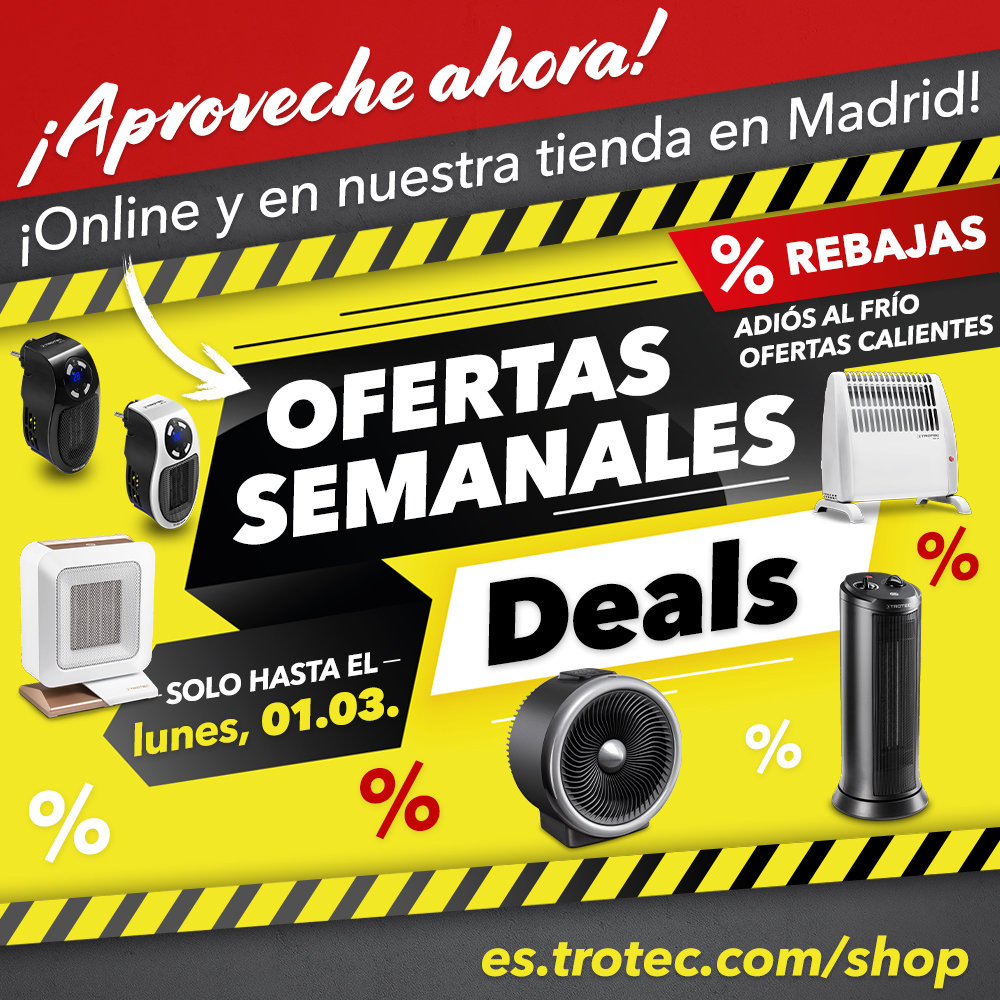 PUEDE ENCONTRAR SUS OFERTAS EN NUESTRA TIENDA ONLINE:Todas las «MEJORES OFERTAS» se muestran en nuestra página web, en la tienda online https://es.trotec.com/shop Basta con navegar con las flechas de «derecha» e «izquierda» y encontrará todas las ofertas actuales. |