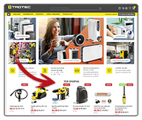 PUEDE ENCONTRAR SUS OFERTAS EN NUESTRA TIENDA ONLINE:Todas las «MEJORES OFERTAS» se muestran en nuestra página web, en la tienda online https://es.trotec.com/shop Basta con navegar con las flechas de «derecha» e «izquierda» y encontrará todas las ofertas actuales. |