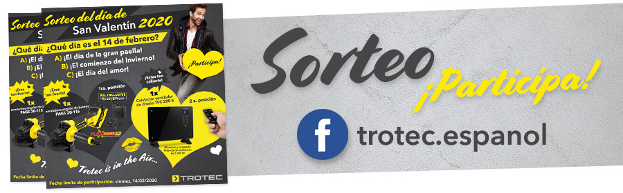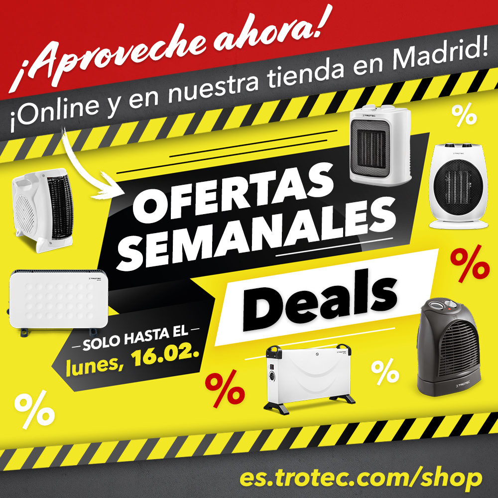 PUEDE ENCONTRAR SUS OFERTAS EN NUESTRA TIENDA ONLINE:Todas las «MEJORES OFERTAS» se muestran en nuestra página web, en la tienda online https://es.trotec.com/shop Basta con navegar con las flechas de «derecha» e «izquierda» y encontrará todas las ofertas actuales. |