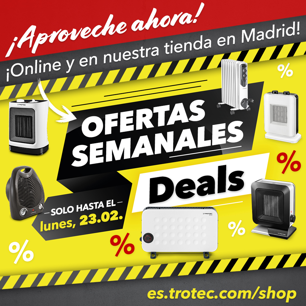 PUEDE ENCONTRAR SUS OFERTAS EN NUESTRA TIENDA ONLINE:Todas las «MEJORES OFERTAS» se muestran en nuestra página web, en la tienda online https://es.trotec.com/shop Basta con navegar con las flechas de «derecha» e «izquierda» y encontrará todas las ofertas actuales. |