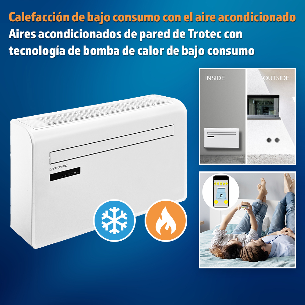 Los aires acondicionados modernos como los equipos de aire acondicionado de pared PAC-W 2600 SH y PAC-W 2650 SH sin unidad exterior son auténticos multitalento. En los días cálidos de verano, cuando el calor resulta insoportable, estos equipos de elegante estética proporcionan una rápida refrigeración. Pero eso no es todo. Si instala un equipo de aire acondicionado PAC para refrigerar su sala de estar o la oficina, solo estará aprovechando el 25 % de su potencial. Y es que con los aires acondicionados 4 en 1 podrá ventilar, deshumidificar e incluso calentar cualquier estancia con la misma eficacia y potencia.