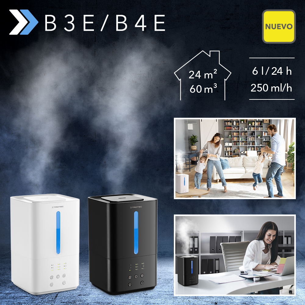 Cualquier persona que se queje actualmente de ojos irritados, piel seca, infecciones respiratorias o sueño intranquilo podría estar sufriendo las consecuencias de una humedad ambiental insuficiente. Especialmente en los meses de invierno, el aire seco de la calefacción tiene un efecto nada bueno en nuestro bienestar. Por cierto, el aire demasiado seco también prolonga el tiempo de supervivencia del virus de la gripe y el coronavirus, ya que sólo se encuentran a gusto en humedades de hasta el 40 %. Con los humidificadores ultrasónicos 3 en 1 B 3 E / B 4 E, estos efectos del aire excesivamente seco pueden solucionarse de forma rápida y permanente: el aire de la habitación se humidifica agradablemente, se aromatiza y se purifica adicionalmente.