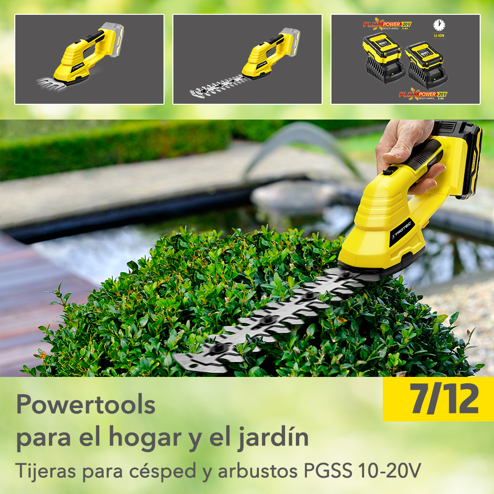 Un jardín bien cuidado tiene un valor que no necesita explicación. Pero más allá de los cuidados necesarios, también requiere de las herramientas de jardinería adecuadas. Ya sea si quiere cortar los bordes del césped con precisión, recortar los setos de hoja pequeña o dar forma a los arbustos, con las tijeras de hierba y arbustos a batería PGSS 10‑20V 2 en 1 siempre tendrá a mano la herramienta eléctrica adecuada. Gracias al accesorio intercambiable de tijeras de hierba y arbustos con sistema de clic, podrá realizar casi todos los trabajos de corte, modelado y mantenimiento para el cuidado de la propiedad y el jardín con una sola herramienta.