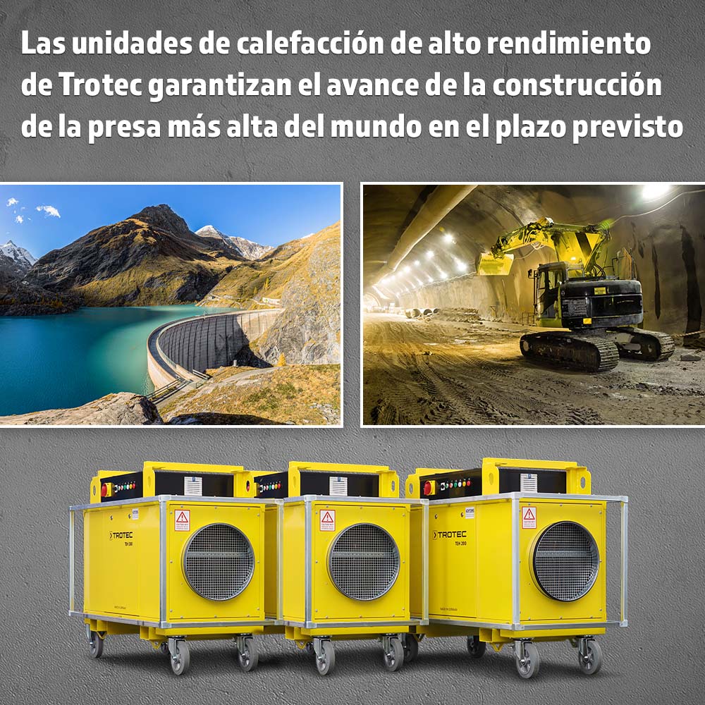 Justo a tiempo antes de que todo se congele en la obra, en el almacén o en los talleres sin calefacción: ya están disponibles los calefactores eléctricos profesionales de última generación TDE, reconocibles por el llamativo logotipo en relieve en los paneles laterales. Estos calefactores robustos con la calidad de la marca Trotec al 100 %, destacan por su potencia calorífica: el TDE 65 con 12 kW y el TDE 95 incluso con 18 kW. Diseñados para un uso continuo sin problemas, los calefactores eléctricos generan más de 1000 metros cúbicos de aire caliente limpio hora tras hora, que también puede transportarse a zonas alejadas insertando una manguera de aire, en caso necesario.