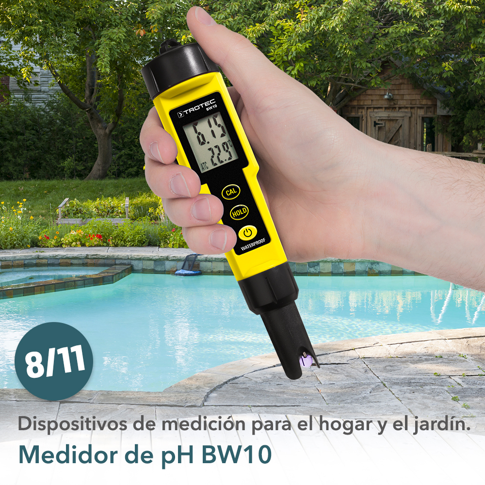¿Pasar tiempo junto a la piscina o el estanque del jardín no es uno de los pocos placeres cotidianos que le quedan en tiempos como estos? Pero para poder relajarse allí de forma permanente, debe comprobar regularmente el valor del pH del agua con el medidor compacto BW10, ya que éste no debe volverse demasiado ácido o alcalino. Esto se aplica sobre todo para una piscina en la que hay que añadir continuamente desinfectantes como cloro o bromo. Pero incluso en los estanques naturales, que no suelen necesitar ningún aditivo químico, el valor del pH siempre puede variar debido a la lluvia o al llenado con agua del grifo.