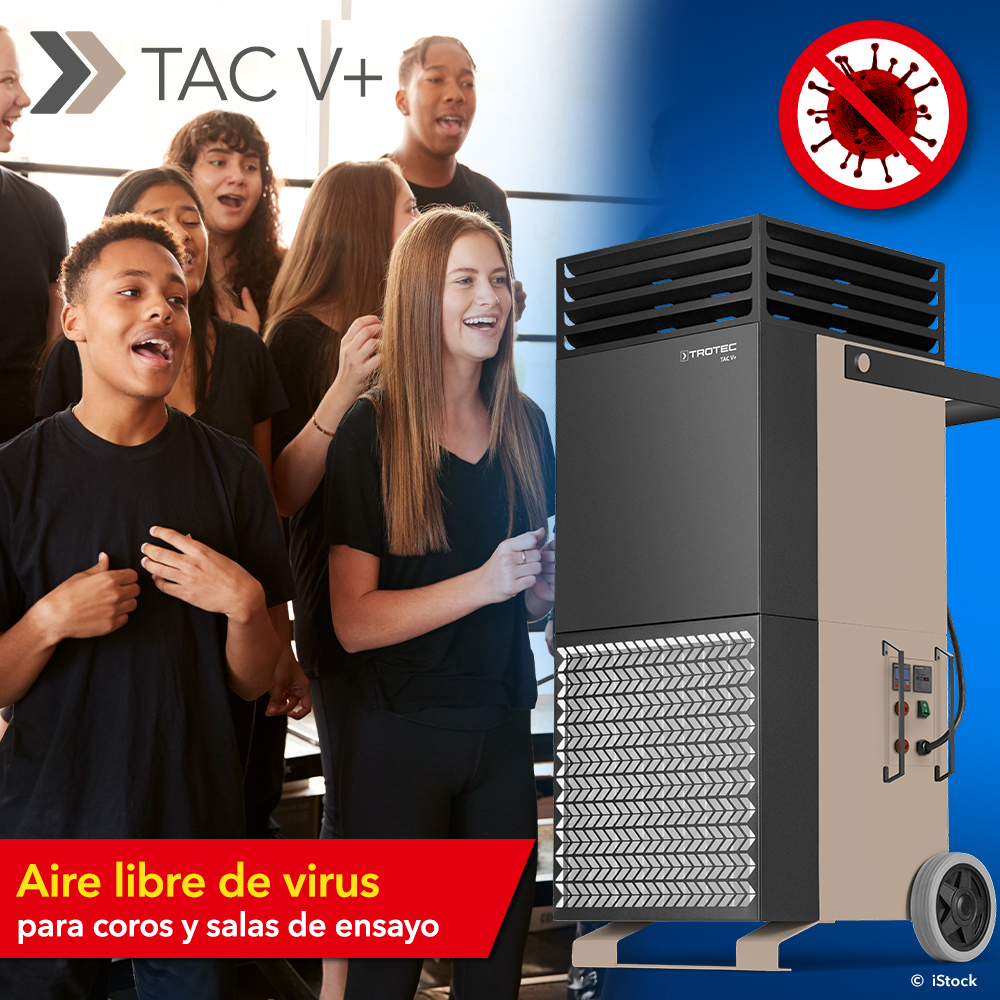 Para reducir el riesgo de contagio en Bibliotecas y librerías públicas Trotec ha desarrollado un nuevo tipo de purificador de aire de alta frecuencia TAC V+. Los aerosoles infecciosos (partículas de saliva diminutas), que trasmiten el virus a través del aire de la habitación según el instituto de referencia alemán Robert Koch se filtran a través TAC V+ hasta en un 99,995 % del aire de la habitación. Los aerosoles son según la opinión de científicos y virólogos una de las fuentes principales para la infección con Coronavirus. Si, por el contrario, se «purifica» el aire de la habitación de forma permanente y efectiva, se reduce el peligro de infección a través de aerosoles al hablar y toser prácticamente a cero.