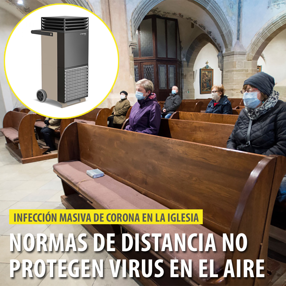 La importancia de la purificación del aire en las iglesias y otros lugares de oración ha quedado de nuevo demostrada por los recientes casos de infección en Fráncfort del Meno. A pesar de que se cumplían todas las exigencias, después del servicio se desencadenó una infección en masa. Los expertos reivindican por tanto, y cada vez más, lo siguiente: tan solo una purificación de los virus del aire permanente protege de respirar aeorosoles cargados de virus que, especialmente al rezar en voz alta y cantar, se expulsan al ambiente y permanecen en el aire hasta varias horas. El novedoso purificador del aire de alta frecuencia TAC V+ de Trotec completa los conceptos de higiene, claramente inconclusos, y ofrece una protección efectiva frente al riesgo de contagio por el aire. El purificador de aire filtra los aerosoles infecciosos del aire rápida y eficazmente antes de que puedan llegar al cuerpo a través de las vías respiratorias.