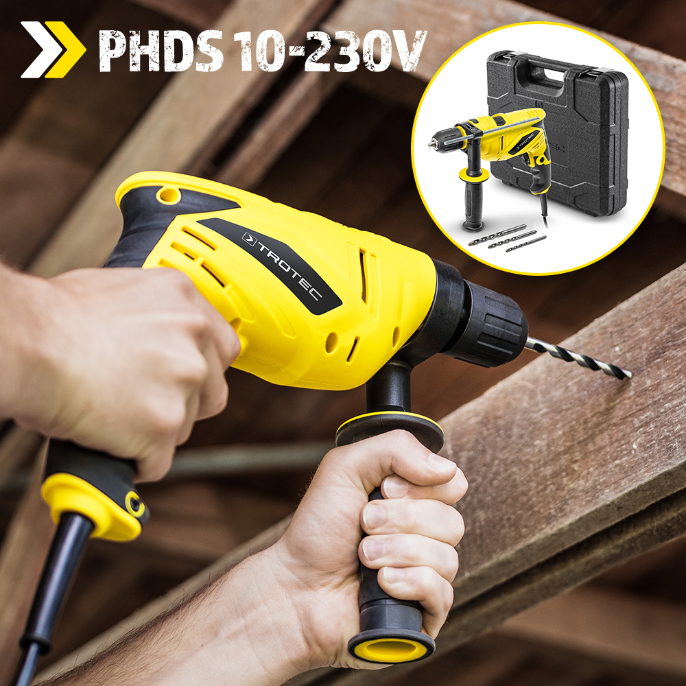 Taladradora de impacto PHDS 10-230V: para taladrar, martillear y atornillar con potencia en mampostería, hormigón, madera y metal. Por fin disponible de nuevo