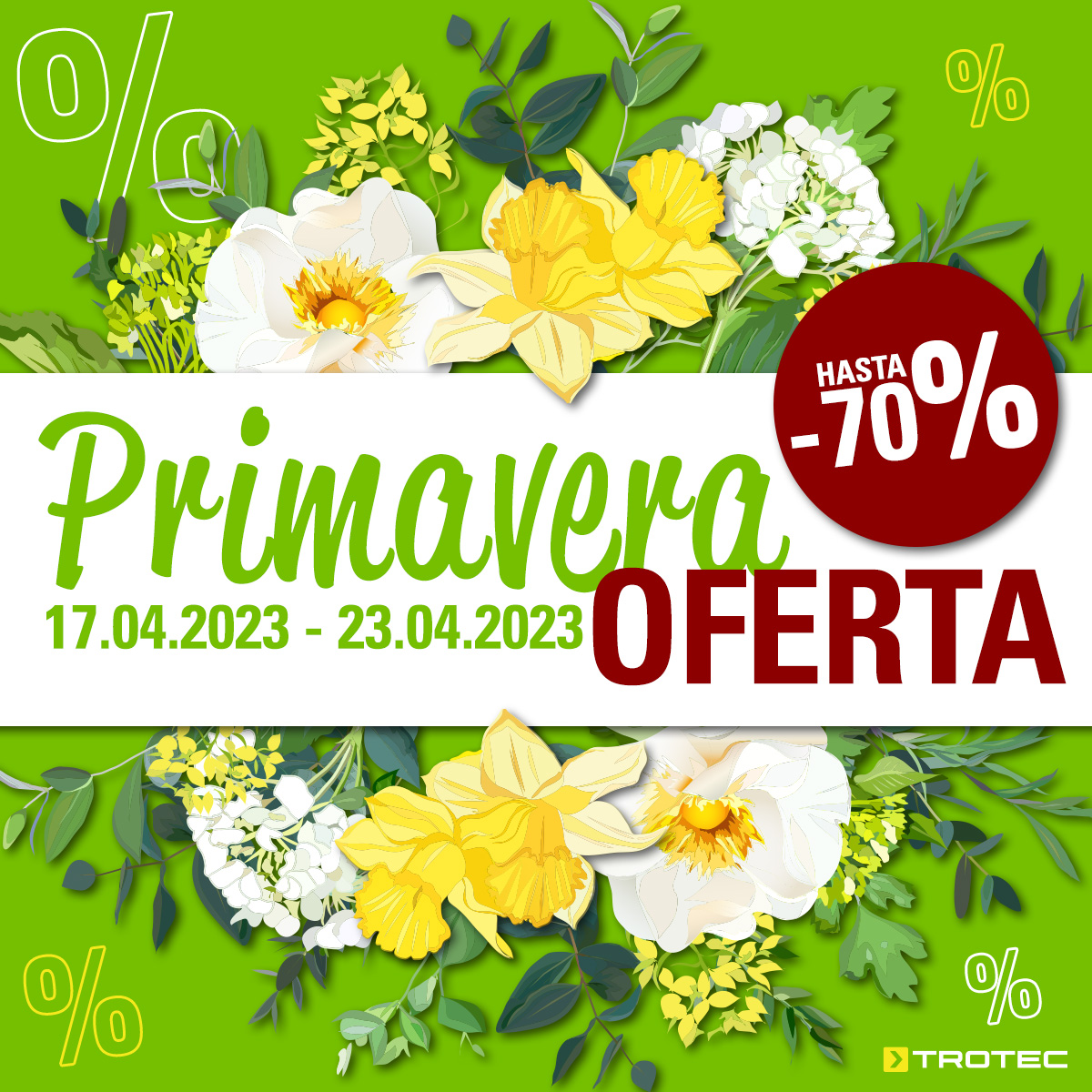 La OFERTA DE PRIMAVERA de Trotec comienza el lunes 17.04.2023. Hasta el 23.04.2023, es decir, UNA SEMANA ENTERA, puede esperar una gran oferta cada día. 😍