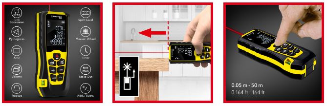 DISTANCIÓMETRO LÁSER BD22 – ¡MEDIDOR DE DISTANCIA LÁSER PRECISO CON NIVEL DE BURBUJA Y RUEDA DE MEDICIÓN!