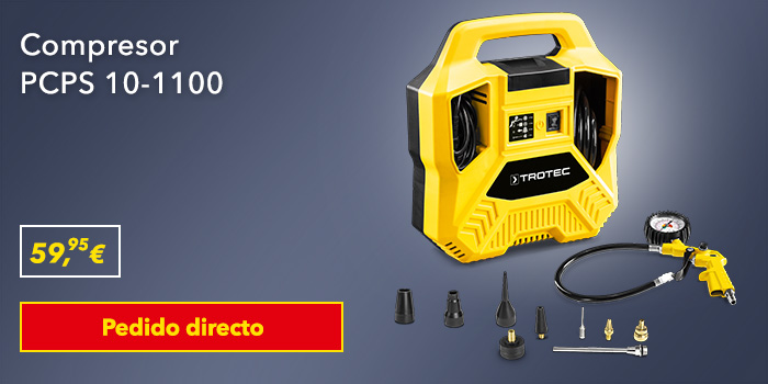 Cada vez son más las cadenas de gasolineras que introducen aparatos que solo miden la presión de los neumáticos a cambio de dinero. Por un euro, se realiza una comprobación de la presión de aire durante un tiempo limitado, con la opción de rellenar los neumáticos. La supuesta pequeña cantidad por el autoservicio se va acumulando con los años. A la larga, resulta más barato comprobar la presión de los neumáticos con su propio compresor. Sin colas ni largas esperas. El compresor de aire comprimido PCPS 10-1100 está disponible en la tienda online de Trotec por solo 59,95 € (en lugar de 101,63 €).
