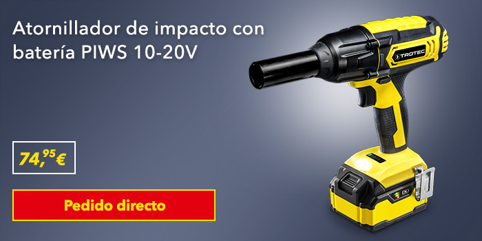 Cambiar los neumáticos de invierno por los de verano cuesta unos 80 euros en un taller especializado (incluido el almacenamiento de los neumáticos). Puede encontrar el destornillador de impacto con batería PIWS 10-20V por solo 74,95 € en la tienda online de Trotec. Los costes de adquisición se amortizan ya con el primer cambio de neumáticos.