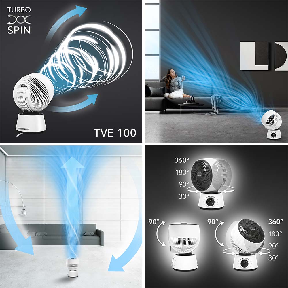 Así calienta con la chimenea o la estufa de forma más efectiva El ventilador turbo 360° TVE 100 distribuye el calor en toda la vivienda