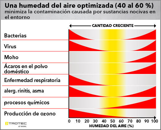 Los médicos especialistas insisten en que podemos reducir el riesgo de infección si aumentamos la temperatura del aire en el interior de los edificios. Si humidificamos el ambiente para aumentar la humedad del aire a aproximadamente el 50 %, reduciremos el riesgo de transmisión el virus. Dado que casi dos terceras partes de los casos de SARS se deben a la transmisión que se produce en hospitales, precisamente aquí podemos esperar un efecto positivo drástico si recurrimos a la humidificación adicional. Pero la humidificación también se puede utilizar en los ámbitos privado y laboral. Además, el aire húmedo es bueno para las defensas de las vías respiratorias, ya que las limpia de manera eficiente y mejora las defensas inmunitarias.