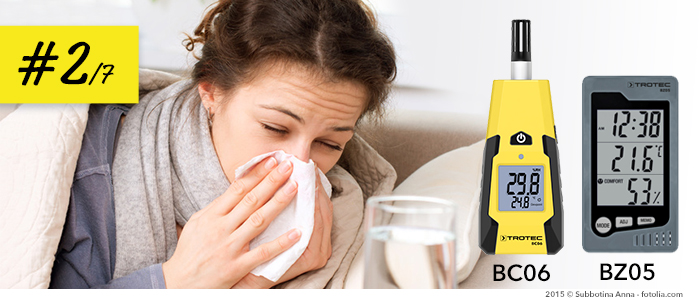 Una humedad demasiado alta o demasiado baja pueden provocar problemas a la salud. ¿Padece constantemente de resfriados? ¿Tiene dificultades para respirar? ¿O quizá se condensan a menudo las ventanas del salón y el agua resbala por el cristal? Como muy tarde en ese momento debería medir regularmente el contenido de humedad del aire porque la humedad óptima contribuye de forma decisiva a la salud y al bienestar.