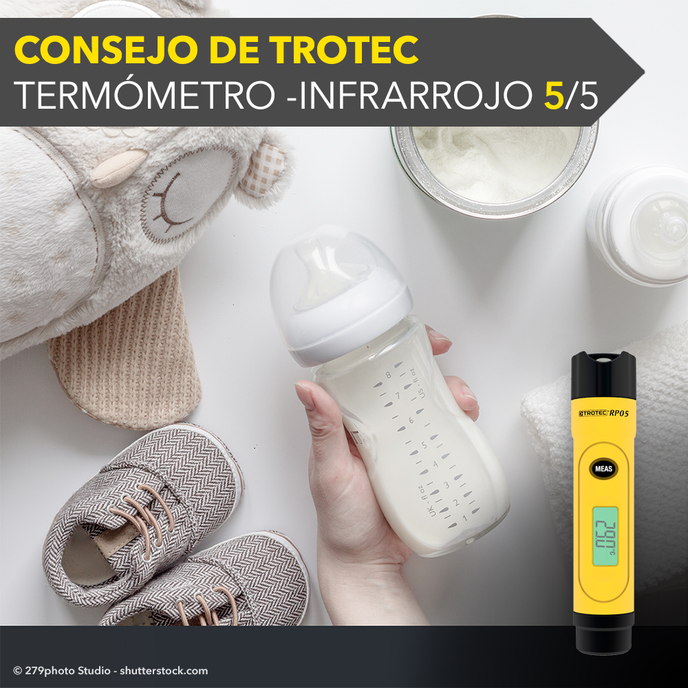 El termómetro por infrarrojos en formato mini, como el RP05 de Trotec, es una variante especialmente compacta del deseado termómetro digital. Con esta versión mini también puede medir de forma rápida, fiable y sin contacto, la temperatura superficial de cualquier objeto. Pero su gran ventaja reside en su tamaño: puede guardarlo en el bolsillo del pantalón o en cualquier bolso. Un medidor absolutamente imprescindible para verificar la temperatura correcta de la comida del bebé cuando no está en casa.
