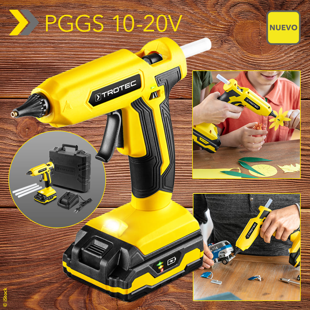 Benefíciese de la calidad de la marca Trotec como garantía de alto valor, seguridad y funcionalidad. Pida hoy mismo la nueva pistola de pegamento caliente con batería PGGS 10-20V en paquete completo a nuestro precio de oferta por solo 49,95 € (IVA incl.)¡Ya disponible en la tienda Trotec!