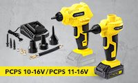 Obtendrá el compresor de batería PCPS 10-16V, la bomba de aire de batería PCPS 11-16V así como el cargador con la calidad de la certificación TÜV como garantía de su alto valor, seguridad y funcionalidad listos para su uso incluidos en el maletín de transporte suministrado