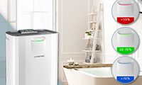 Nuestro deshumidificador confort destaca además por su luz de advertencia de nivel de llenado cuando el depósito de condensación está lleno, un filtro de aire y de carbón activo lavable para filtrar el polvo y el pelo de animales. Gracias a la técnica de adsorción probada, este aparato no requiere ni compresor ni refrigerante o pausas de descongelación y, por lo tanto, deshumidifica con un consumo de energía eficiente y sin generar ruidos molestos.